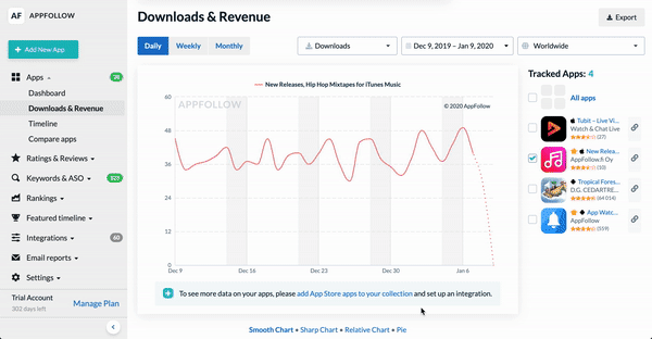 We've made analyzing your downloads and revenue more convenient. The 'Downloads & Revenue' section now lets you export app data from the App Store and Google Play. Just select the time interval, dates, and countries you need data for.