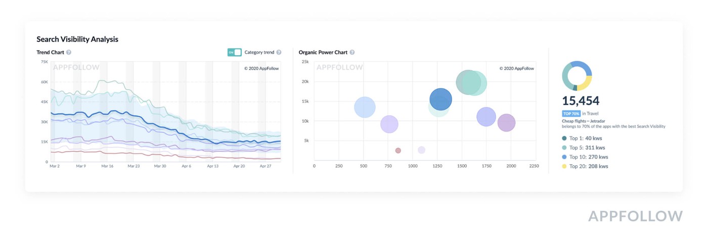 Category trend on the left chart shows that the whole category search visibility is going down — people didn’t search for airline tickets those days.