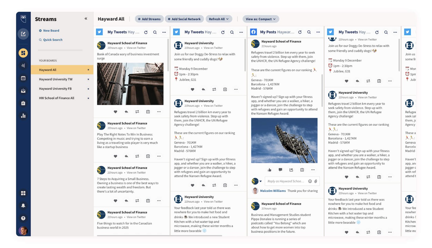 - Follow your business’s social media coverage across social networks such as Twitter and Facebook. Social media monitoring feature lets you search keywords and not just hashtags & handles.