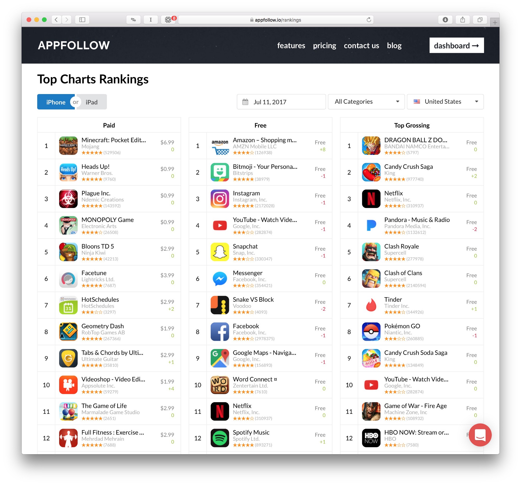 That’s why we decided to add our own top charts section. Right now we support only App Store (iPhone & iPad) with all the categories in most popular countries. Charts are available both on our web-site and in ASO Tools part of your AppFollow account.