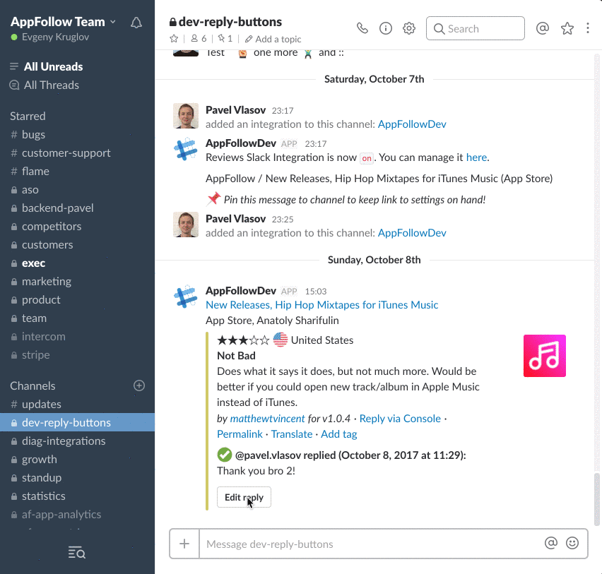 We keep an eye not only on App Store updates but also on Slack improvements. That’s why we updated our Slack Reply bot with modal window to type your replies to users reviews.