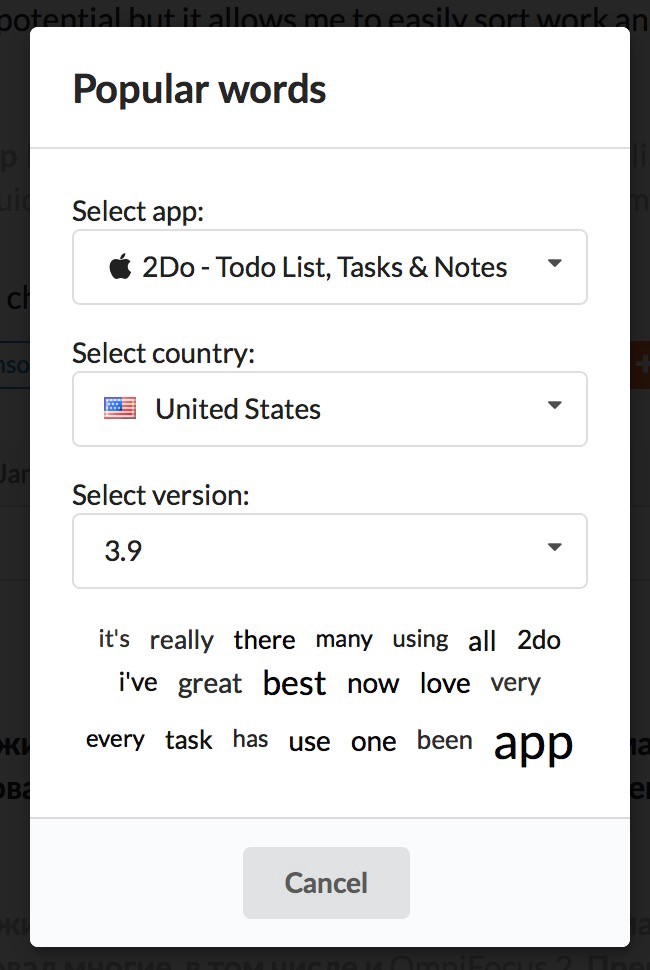 As you remember, in November we launched “Popular words” feature, that shows the most popular words in users reviews within your Favourite Apps. Right away we were asked us to split this data per app version. We heard you: