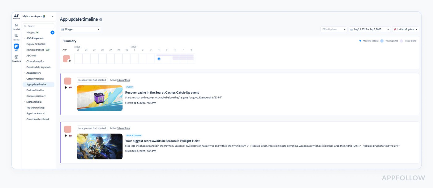 Events now show on app update timeline. See start/end dates, descriptions, media, and active countries across all regions.