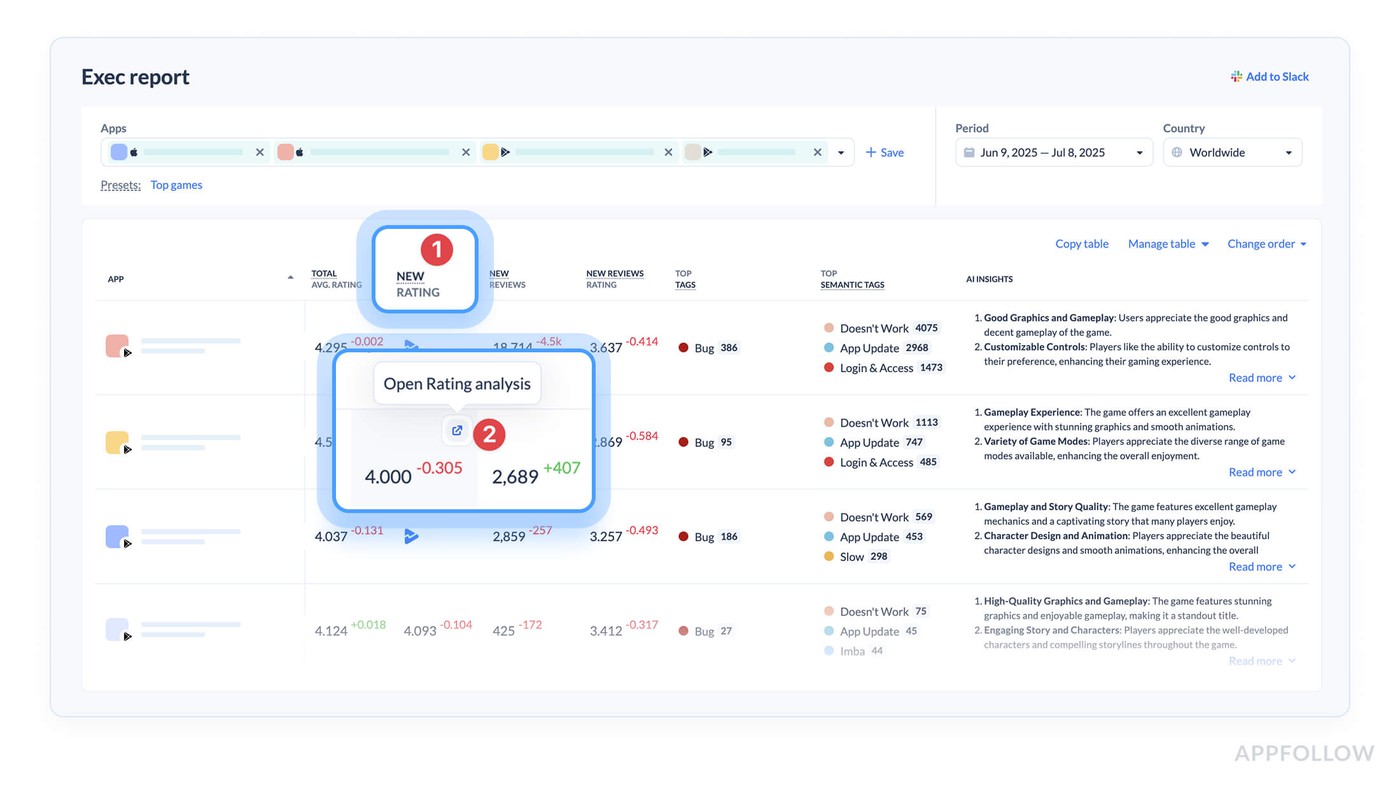 Added the new rating metric showing average rating from fresh reviews during your selected period. Tracks whether recent updates are performing well.