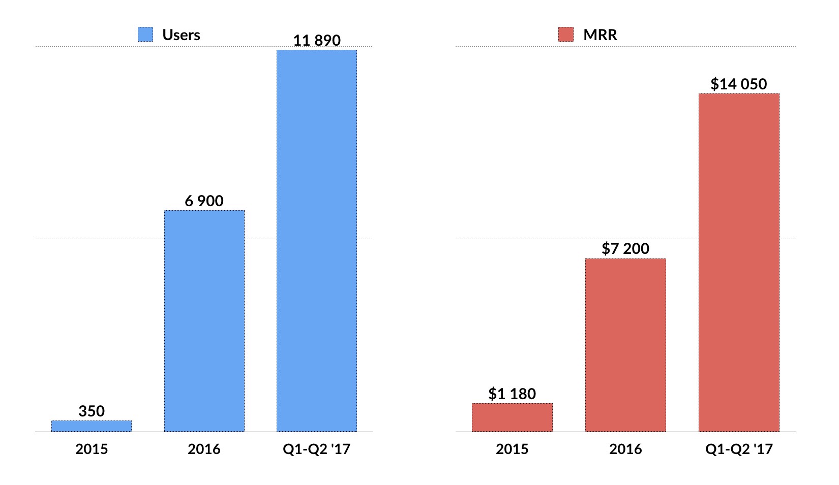 - By the end of the quarter our MRR reached $14k (more than 300% growth YoY) and ARPPU — $42/mo (from $25/mo a year ago). Average lifetime for Premium customers is 14 months.