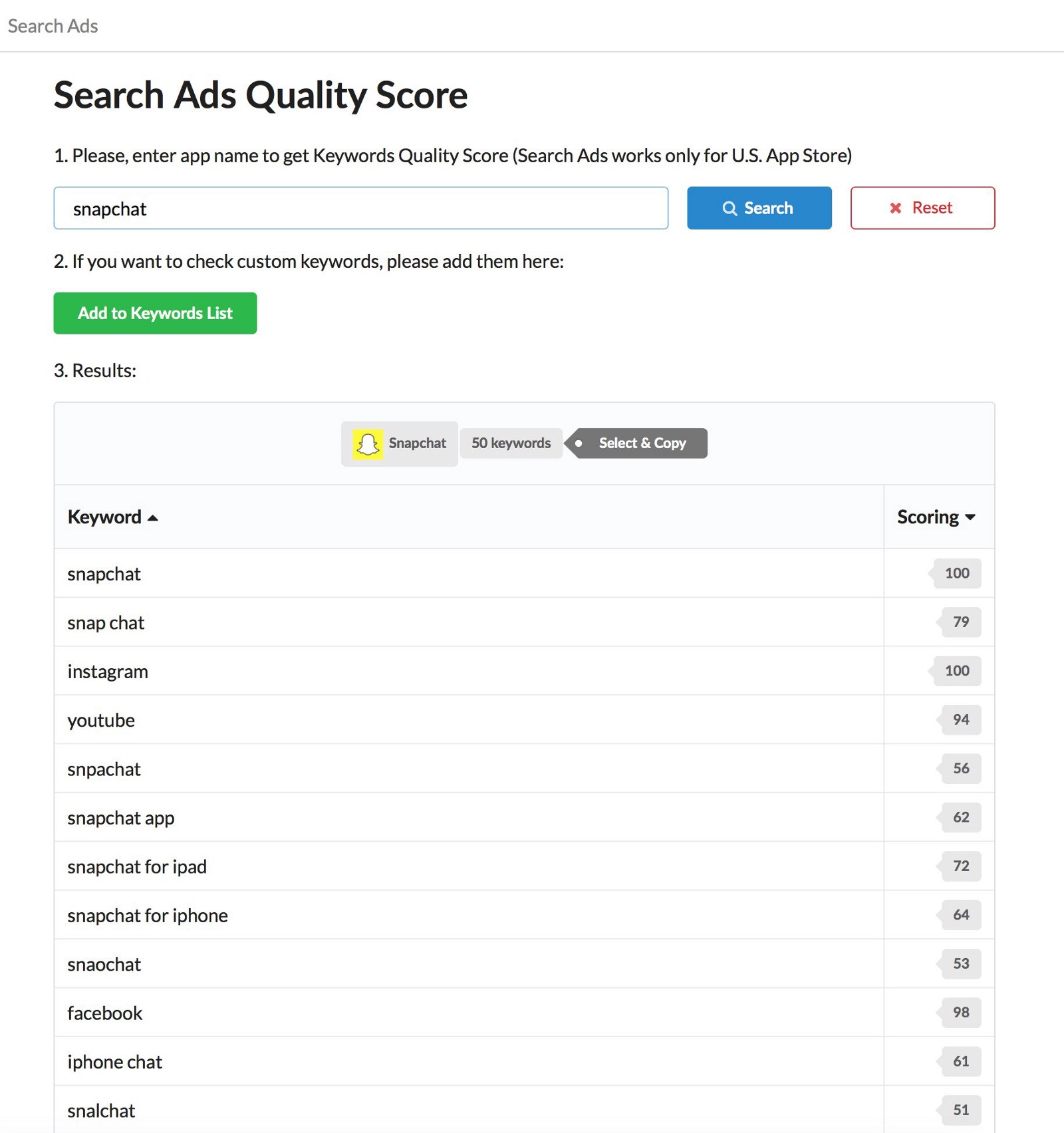 - get relevant to your app keywords as it is shown in Search Ads. Every phrase is estimated on a scale from 5 to 100,