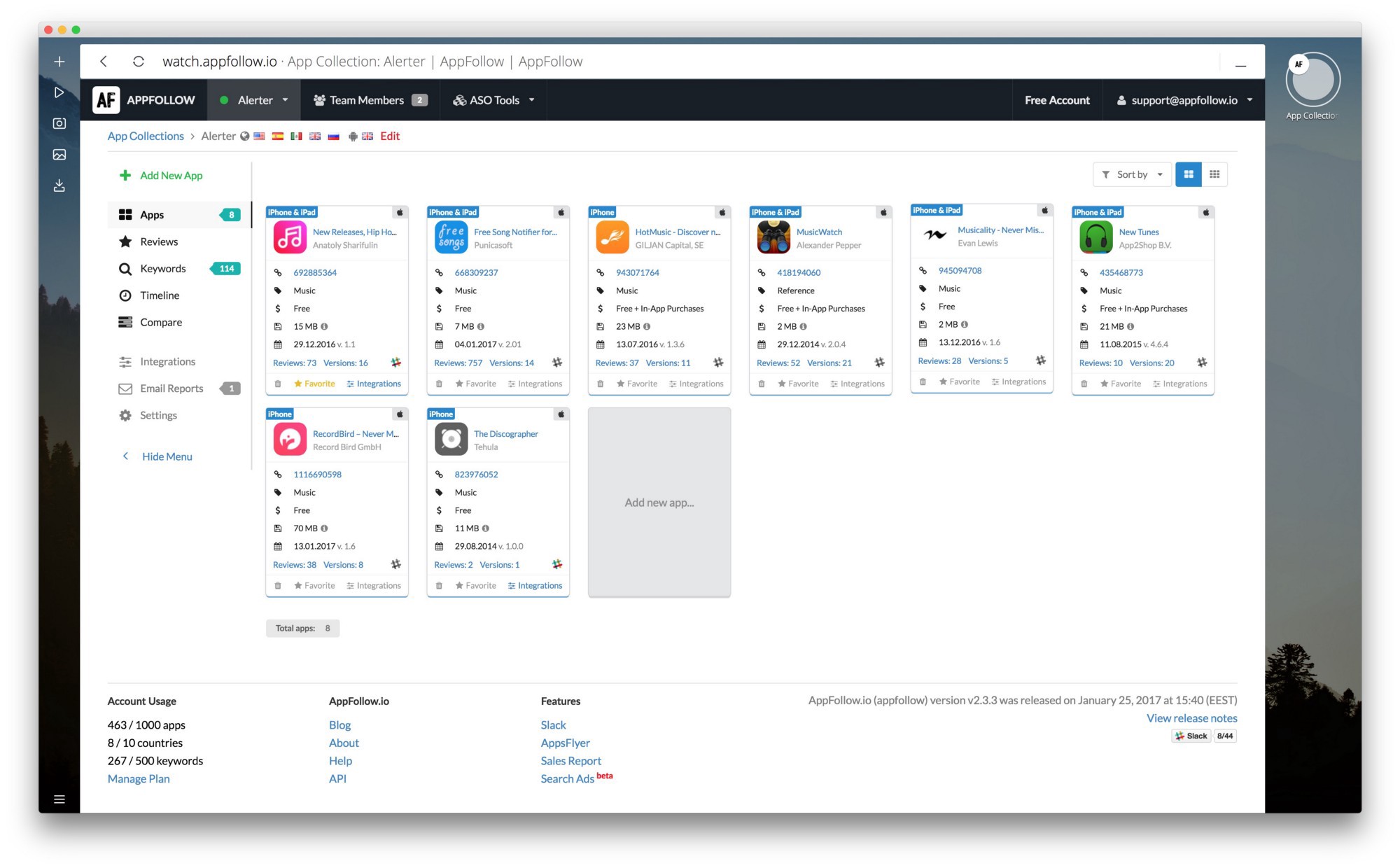 Follow AppFollow news in Twitter, Facebook or Medium, and we will help you to track your competitors apps in App Store, Google Play and Windows Phone Store through Slack, HipChat, Zendesk, email and chat-bots.