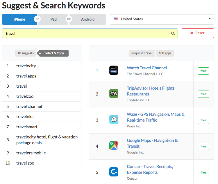 Don’t take into account the titles with “-”, “:” or “&”. These suggests are app names.