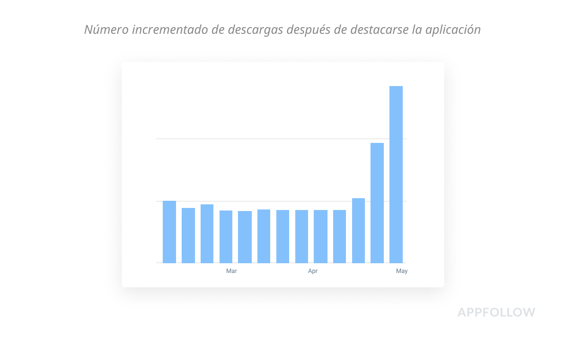 Los desarrolladores de aplicaciones sueñan literalmente en aparecer como destacados, ya que es la forma más rápida de aumentar las descargas de aplicaciones y obtener posiciones más altas en el ranking. Este es un ejemplo real de cómo aumenta la cantidad de descargas después de ingresar a la pestaña “Today” de Apple: