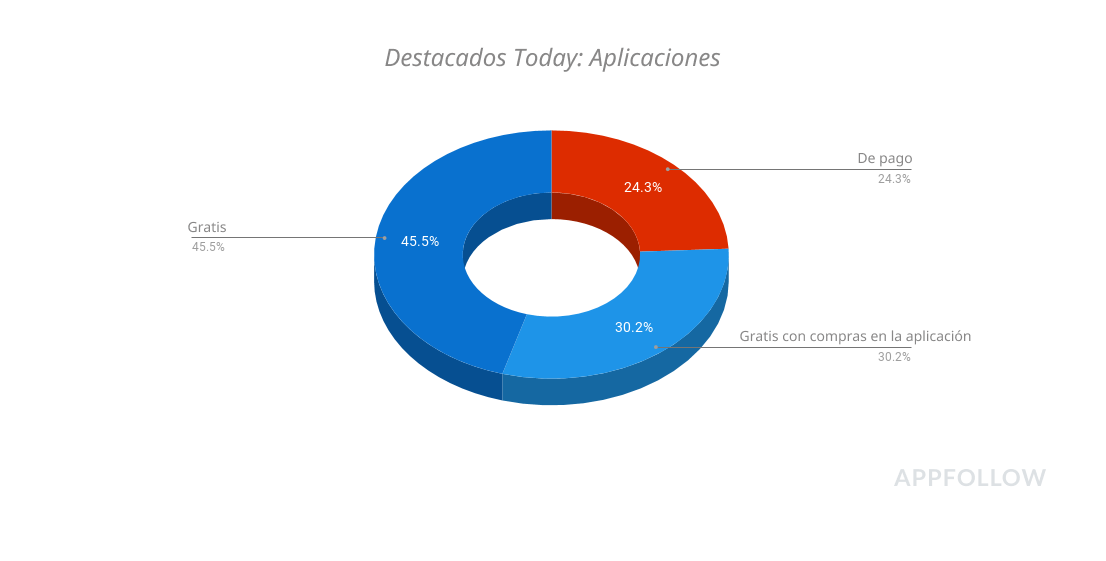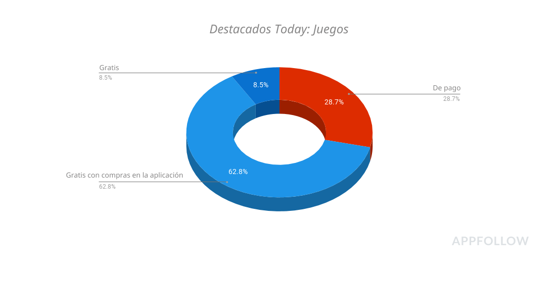 Las aplicaciones son más propensas a aparecer destacadas que los juegos. En los últimos seis meses, su participación ha sido del 70 % y, como es lógico, la proporción de aplicaciones gratuitas es del 46 %, mientras que para los juegos, solo el 8% de todos los juegos destacados eran completamente gratuitos.