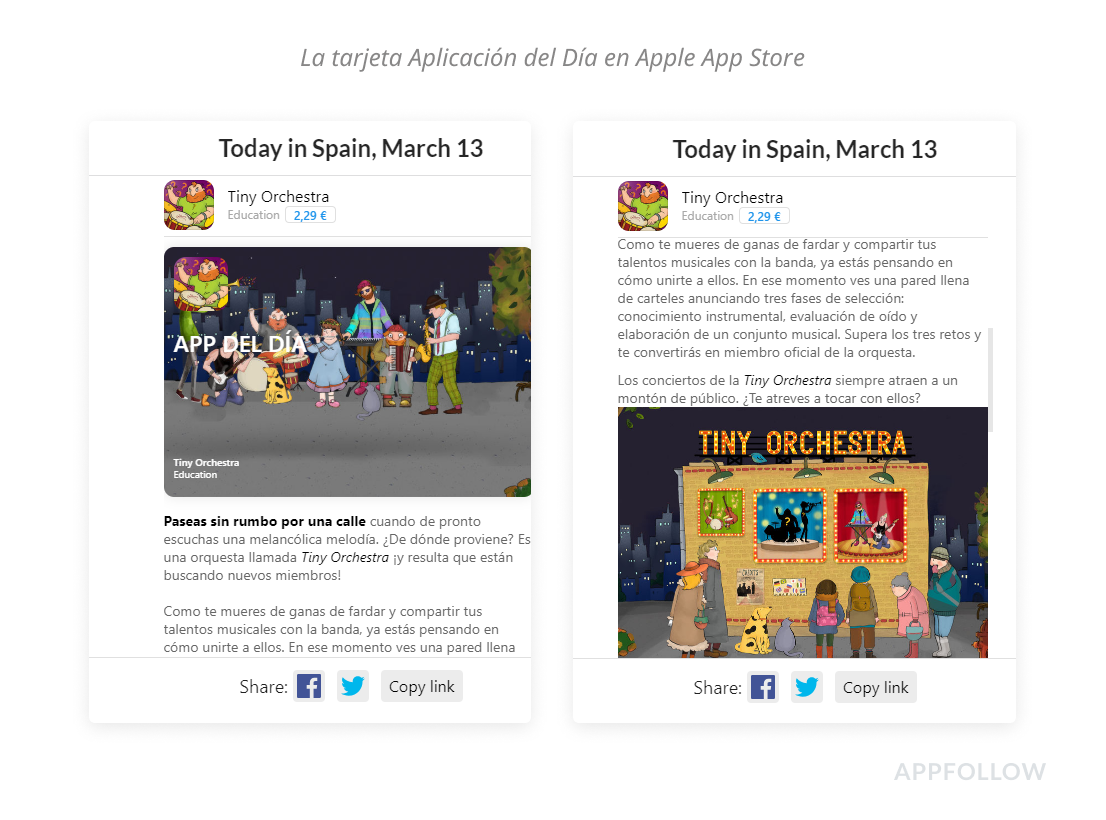 A partir de la versión iOS 11, los editores de Apple publican las listas de las mejores aplicaciones y juegos y cuentan los casos de éxito de sus desarrolladores. Estas singulares historias atraen a miles de usuarios diariamente y brindan a los desarrolladores de aplicaciones una enorme cantidad de impresiones y nuevos usuarios.