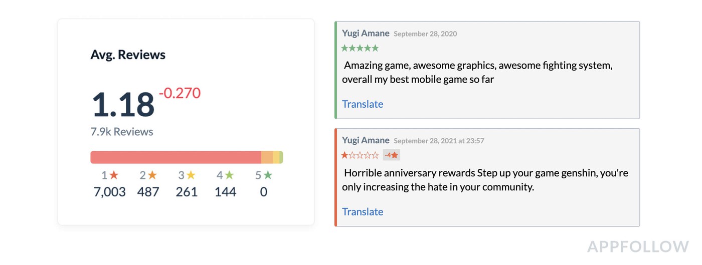 On September 28, Genshin Impact, made by MiHoYo, was hit with a barrage of negative reviews on Google Play by players dissatisfied with the anniversary gifts from MiHoYo to celebrate the game's first anniversary.