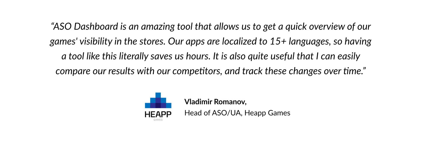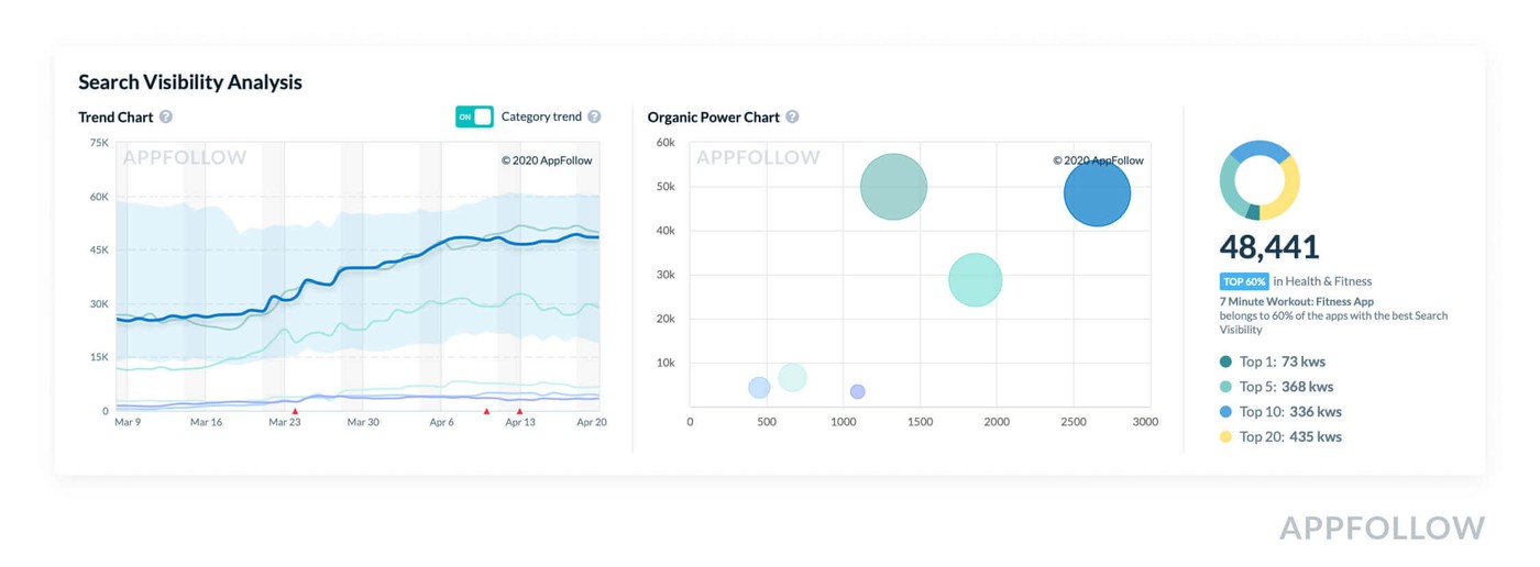 This way, by tracking the Visibility score of major competitors and market players, you will always be aware of the Organic visibility in your category. So if your competitors’ visibility is growing and yours isn’t — then it’s time to rethink your Organic UA and ASO strategies.