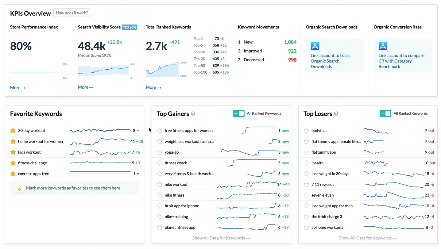 The Top Losers block shows the keywords by which the app lost its positions. This is the fastest way to find and replace keywords that don't do the job.